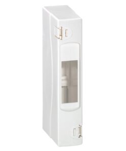 Coffret cache-bornes 1 module IP30 IK05 Classe II 140x30x72mm blanc RAL9010 – avec fond avec trous oblong de positionnement et 1 rail