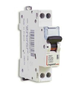Disjoncteur DNX³ uni + neutre 230V~ pouvoir de coupure : – 4500A conforme à la norme NF EN 60891-1 – 230V~ – 50Hz pour les installations résidentielles- 6kA conforme à la norme EN 60947-2 – 230V~ Protection des départs : arrivée haute et sortie basse par bornes à vis Intensité nominale 20A – Courbe D (déclenchement magnétique entre 10In et 14In) – 1 module