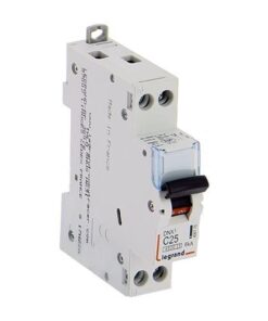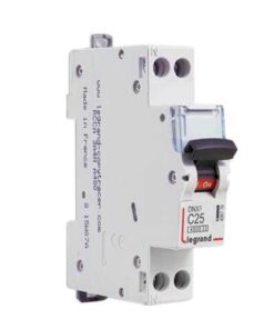 Disjoncteur DNX³ uni + neutre 230V~ pouvoir de coupure : – 4500A conforme à la norme NF EN 60891-1 – 230V~ – 50Hz pour les installations résidentielles- 6kA conforme à la norme EN 60947-2 – 230V~ Protection des départs : arrivée haute et sortie basse par bornes à vis Intensité nominale 25A – Courbe C (déclenchement magnétique entre 5In et 10In) – 1 module