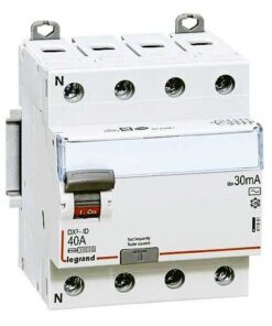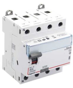 interrupteur différentiel DX³-ID tétrapolaire 400V~ TypeAC sensibilité 30mA 40A arrivée haute et départ bas par bornes à vis pour protection des départs – 4 modules